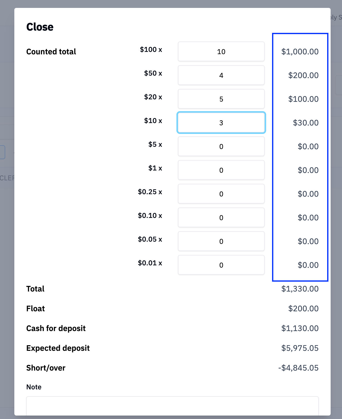When you close out your register, you can now enter each denomination and see a running total. Type “5*20” and it shows $100. No more mental math or calculator apps.